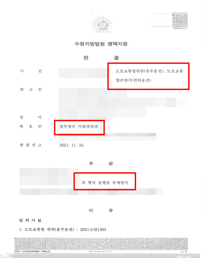 도로교통법위반(음주운전), 도로교통법위반(무면허운전)-집행유예