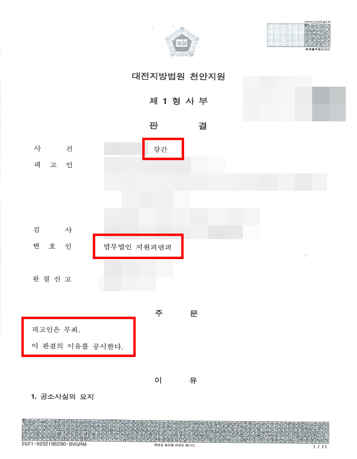 피고인의 변호인 법무법인 지원피앤피는 피고인은 사건 당일 피해자와 합의 하에 성관계를 하였을 뿐, 피해자를 폭행 협박하여 강제로 성관계를 한 사실이 없다는 내용을 주장하였습니다.