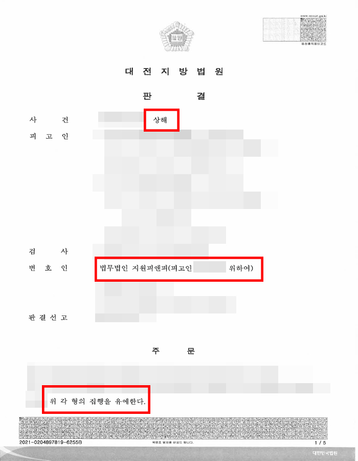 피고인의 변호인 법무법인 지원피앤피는 피고인들이 서로 원만히 합의하여 상대방에 대한 처벌을 원하지 않고 있는 점, 그 밖에 피고인들의 연령, 성행, 가정 환경, 전과관계, 범행의 동기 및 경위, 수단과 결과, 범행 후의 정황 등 양형의 조건이 되는 여러 사정을 종합하여 형을 정하여 달라는 의견을 재판부에 전달 하였습니다.