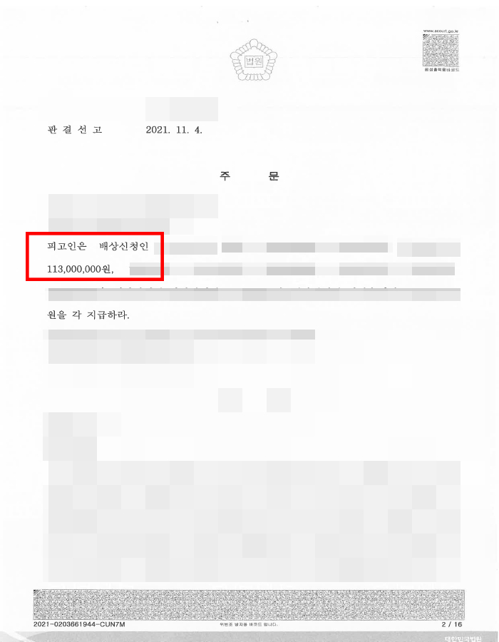 피해자의 소송대리인 법무법인 지원피앤피는 위와 같은 사실로 인하여 피해자가 큰 금전적 피해를 당하였고, 피해금액에 대한 배상신청을 하였습니다.