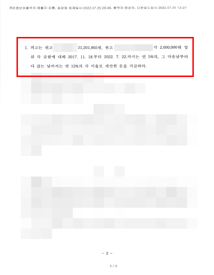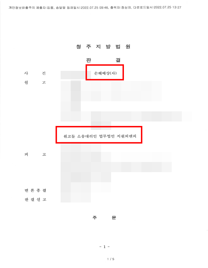 원고들의 소송대리인 법무법인 지원피앤피는 원고들의 가족관계증명서, 진단서, 진료기록 및 의무기록 사본증명서, 소견서, 신체감정신청서 등을 재판부에 전달하였습니다.