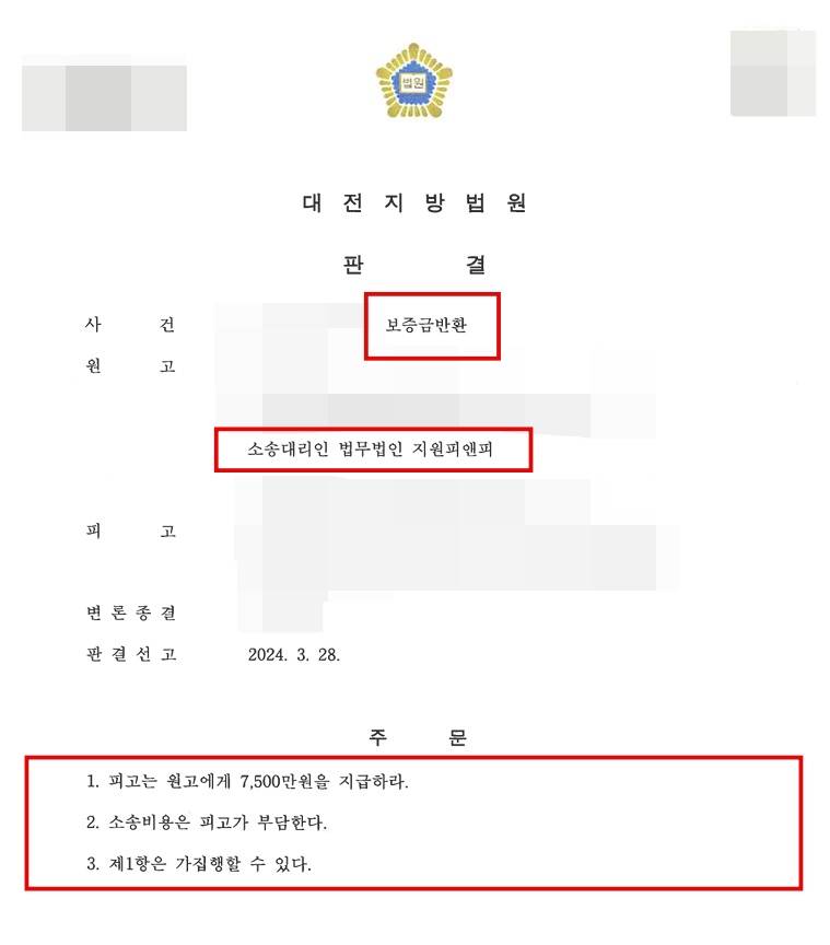 이에 원고는 조속히 보증금을 반환받고자 이 사건 보증금반환 청구소송을 제기하게 되었습니다
