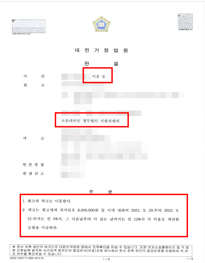 원고의 소송대리인 법무법인 지원피앤피는 원고와 피고 사이의 금원거래 내역, 병원에 직접 피고의 병에 대해 문의한 녹취록, 당사자들의 녹취록, 의학정보 및 위자료 산정을 위한 재산명시까지 진행하였습니다.