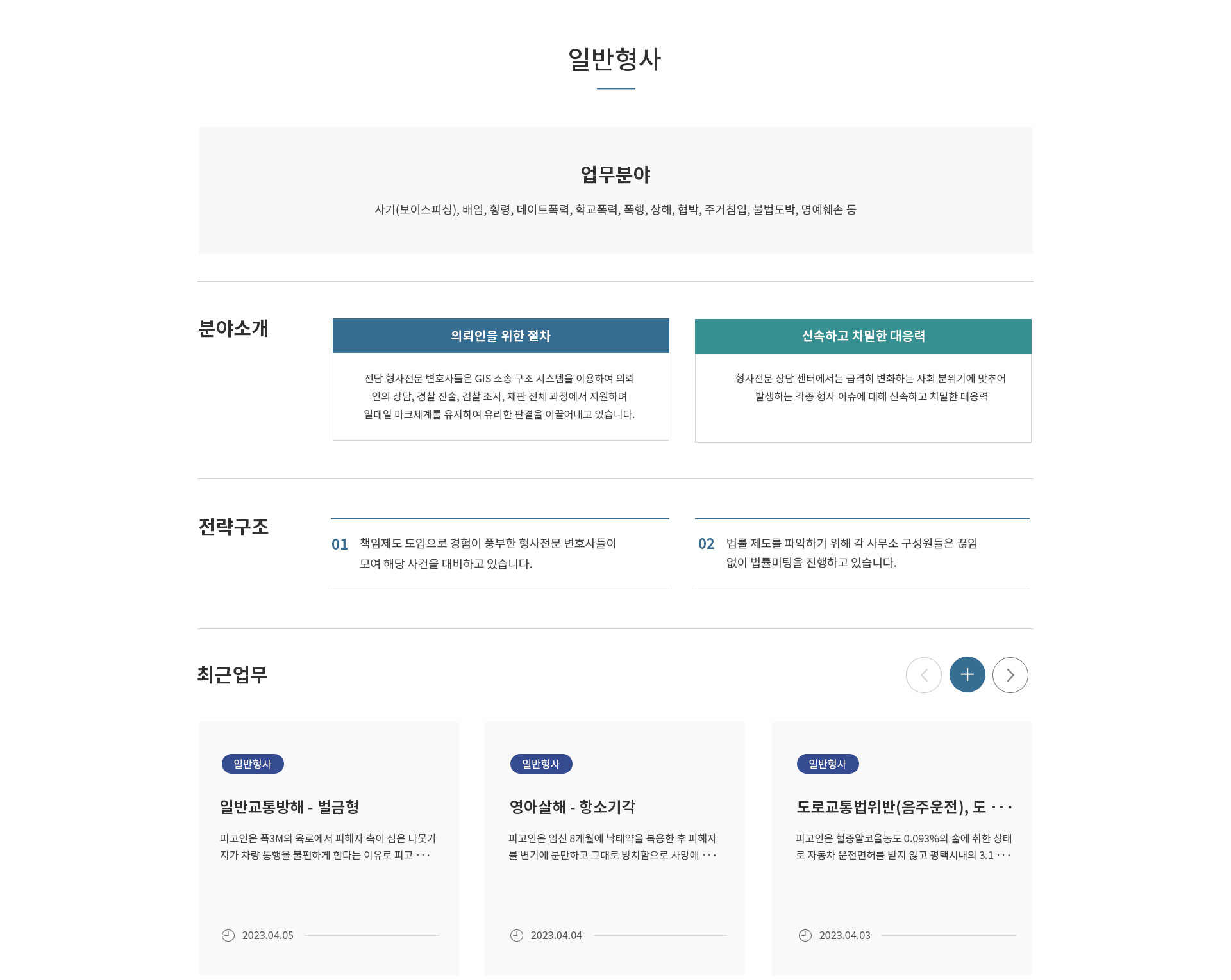 사기(보이스피싱), 배임, 횡령, 데이트폭력, 학교폭력, 폭행, 상해, 협박, 주거침입, 불법도박, 명예훼손 등